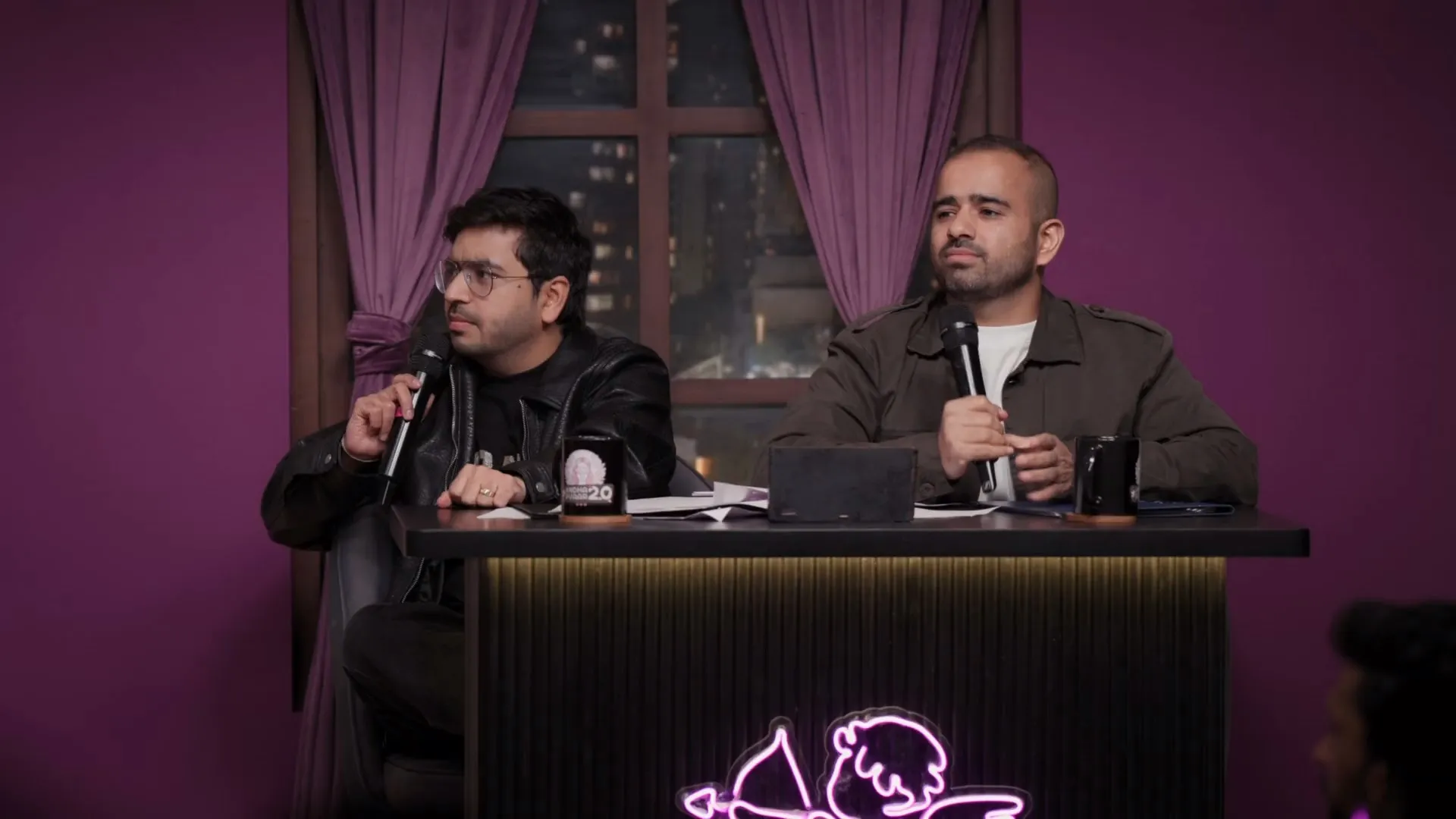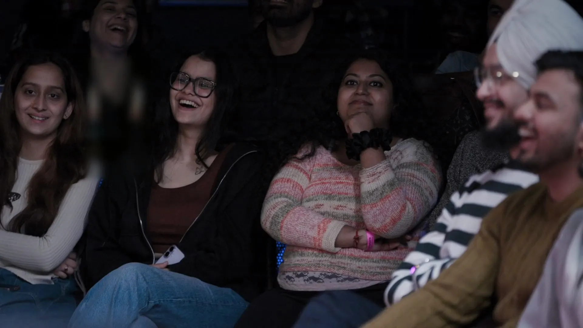 One woman. 4 men. Zero visual bias. A panel of 4-5 comedians orchestrating chaos, wit, and unexpected connections. When you can't see, you're forced to actually listen. Personality trumps appearance.